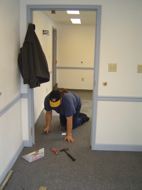 fact carpets were cut, stretched, tucked and tacked. Things are really