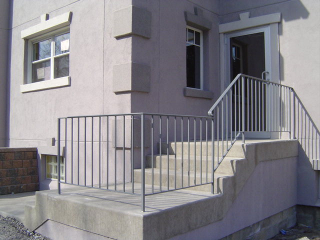 flowering plant in the corner is a silk bougainvillea. Railings were also